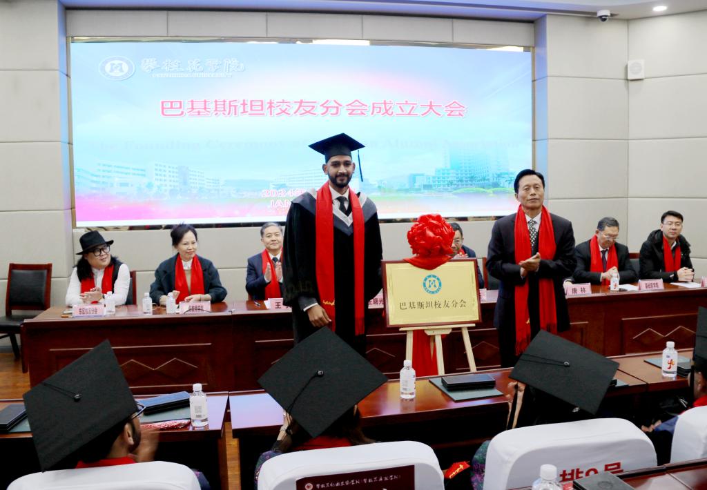 1月12日,我校在纪检监察教室举行2017级巴基斯坦留学生毕业典礼、学位授予仪式暨巴基斯坦校友分会成立大会。这是我校首届临床医学留学生毕业典礼,也是我校首个海外校友分会。党委副书记、校长王曙光,党委副书记刘立新,副校长王兵,基础医学院、学校附属医院、教务处、国际教育学院相关负责人出席典礼并为留学生授位。