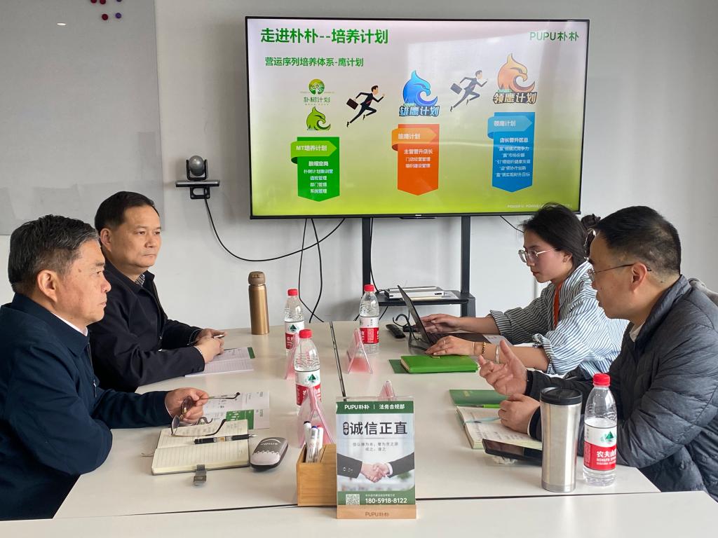 在朴朴成都分公司,王兵一行听取了公司人力资源区域主管胡向阳对公司简介、企业文化、团队建设、商业模式、企业使命和价值观等方面的详细介绍。双方就实习基地建设、人才培养、企业校友分会建设等方面进行了深入交流。