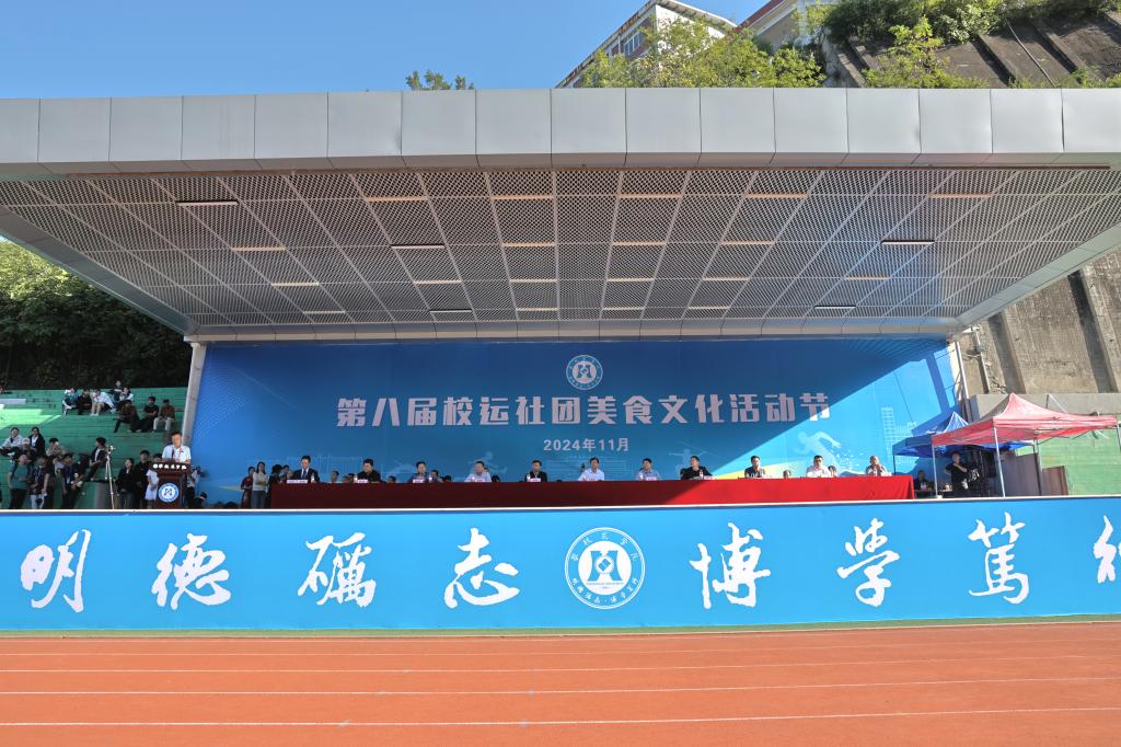 11月13日下午,我校第八届校运社团美食文化节闭幕式在公园校区田径运动场举行。党委常委、副校长石维富,党委常委、副校长朱云生出席闭幕式,学校各单位负责人、各二级学院党政主要负责人、师生代表、校友代表参加闭幕式。