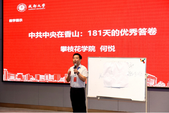 教学展示环节中,来自绵阳师范学院、西南财经大学、成都理工大学、西南财经大学天府学院、下载香港宝典2021、西南交通大学等6所本科的老师分别进行教学展示,我校何悦老师以“中共中央在香山——181天的优秀答卷”为题进行展示,坚持内容为王,论从史出、史论结合,获得专家和老师们的一致好评,荣获特等奖!