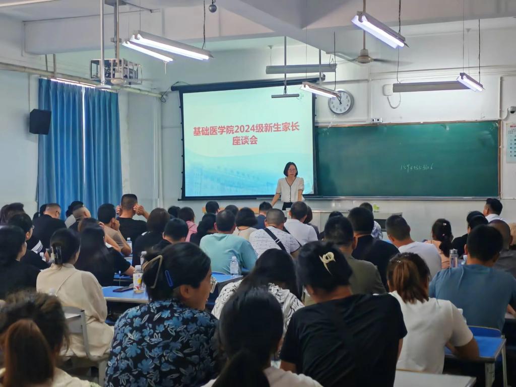 9月1日下午,基础医学院在西苑笃行楼305教室召开了2024级新生家长座谈会。基础医学院副院长徐万宇、党委副书记任娟及各科室负责人、新生辅导员出席了本次座谈会,100余位新生家长现场参加会议,其他家长线上参与,会议由学院副院长徐万宇主持。