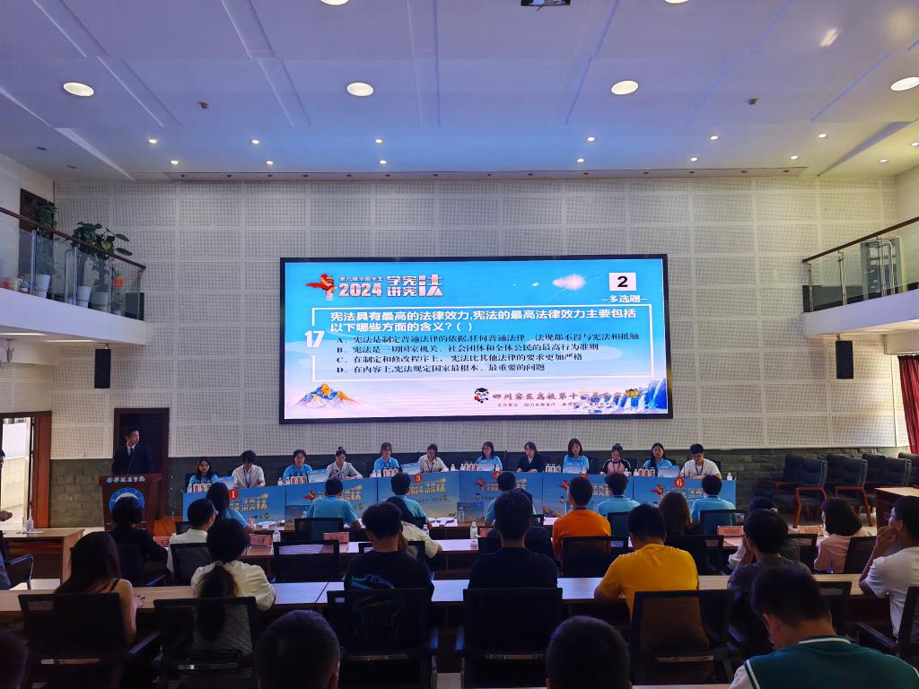 9月20号上午,学校在图书馆学术报告厅举行第九届四川省“学宪法讲宪法”高校组第十一片区素养竞赛,内江师范学院、西昌学院、阿坝师专等六所高校选手齐聚一堂,学生工作部、法学院师生代表参加本次竞赛。