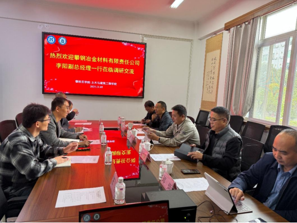 刘瑞峰代表学院对李阳副总经理一行的到来表示热烈欢迎,并简要介绍了土建学院的发展历程、学科建设、人才培养及科研平台等情况。他指出,学院立足攀西地区资源与产业需求,长期聚焦绿色建筑、智能建造、工程材料等方向,尤其在工业固废综合利用、新型建筑材料等领域积累了较为扎实的研究基础,期待与攀钢冶金材料公司在技术研发、成果转化、研究生培养等方面开展深度合作。