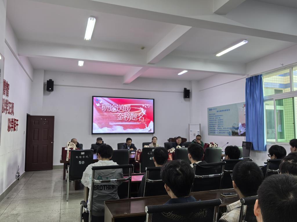 在全国硕士研究生招生考试即将到来之际,为向全力备考的学子表达学院的关怀与支持,12月3日,电气信息工程学院于分测楼会议室举办“研途送暖·金榜题名”考研加油会。学院领导班子全体成员、毕业班辅导员、在读研究生代表与2026届考研学生代表共同参加。
