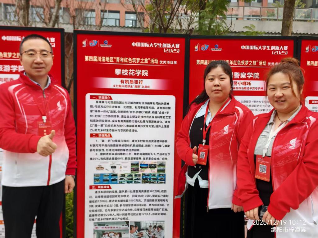 12月19日,以“向下扎根,向上生长”为主题的第四届川渝地区中国国际大学生创新大赛“青年红色筑梦之旅”活动在四川梓潼两弹城举行。我校创新创业学院副院长冯奇、生物与化学工程学院大创导师袁玎和在读研究生刘鑫携项目参会,其中袁玎指导、刘鑫负责的2025年度大创国赛铜奖、省赛金奖项目《有机质银行-乡村振兴的绿金“粪肥”交易所》应邀进行了优秀项目现场展示。