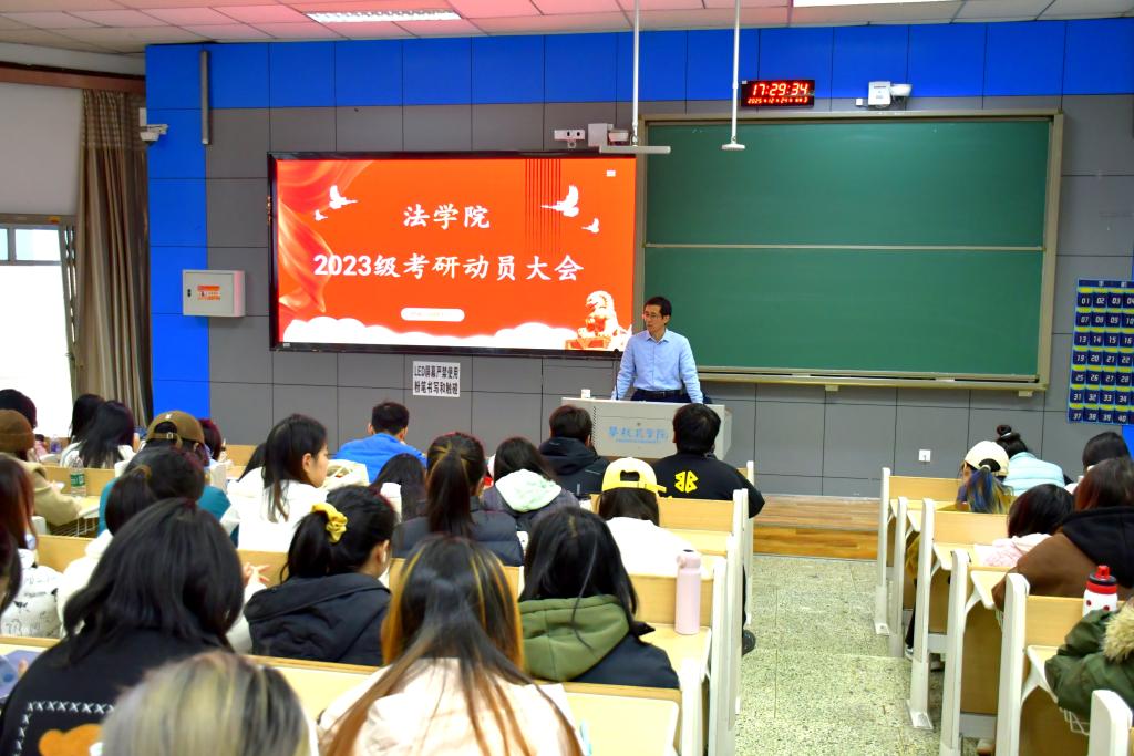 为扎实做好考研指导服务,助力法学学子明确备考方向、增强升学信心。12月24日下午,法学院于志学楼201教室召开2027届学生考研动员大会。学院院长杨开华、党委书记张琳、2023级辅导员王霞出席,2023级全体学生参会。