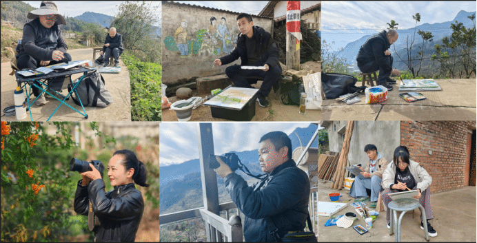 12月11日上午,艺术学院院长孙载斌带领专家团队及硕士研究生一行9人抵达仙山村开展专家服务示范基地活动。本次活动是为仙山村村史馆创作美术写生作品和摄影作品,用艺术描绘美丽仙山,记录仙山村乡愁。