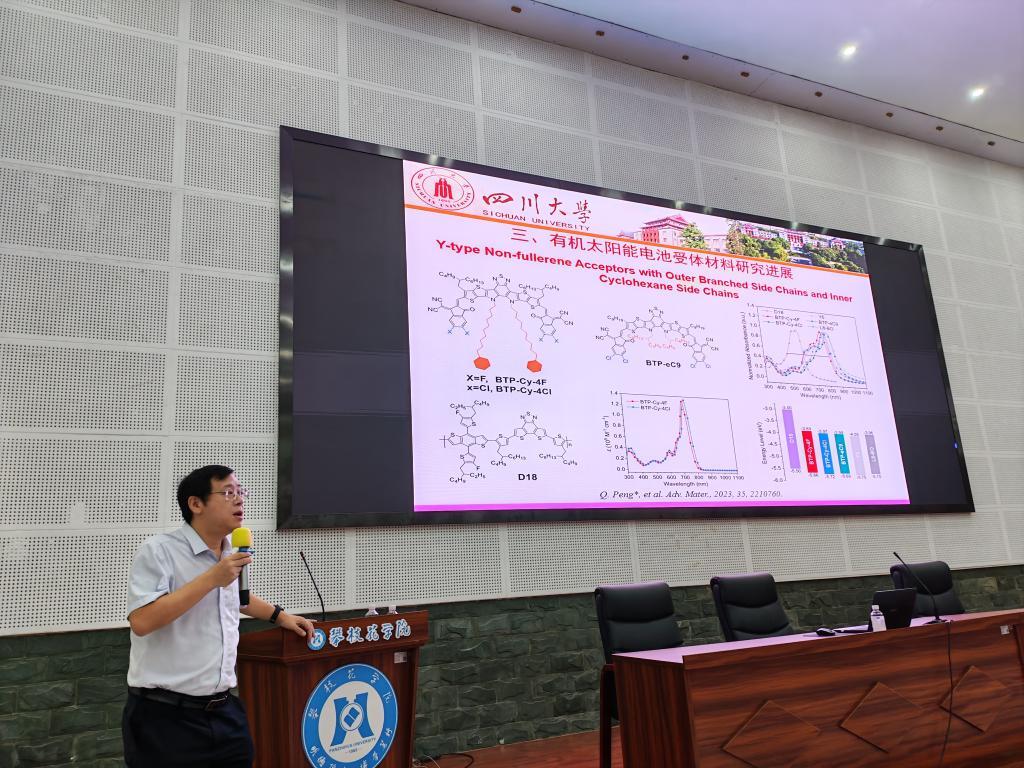 9月26日,两场学术交流活动在博雅厅举行。国家杰出青年基金获得者、成都理工大学材料与化学化工学院院长彭强教授以“有机太阳能关键材料及高效器件研究”为题作学术报告;中国科学院青海盐湖研究所研究员、成都理工大学材料与化学化工学院副院长海春喜围绕“铝系锂吸附剂中国产业化应用现状与思考”作分享交流,我校材料、化工、能源工程相关专业师生参加讲座。