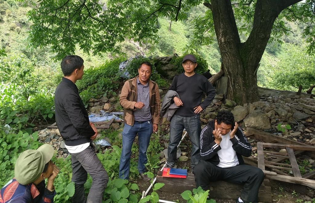 刘忠良与同事同村民沟通