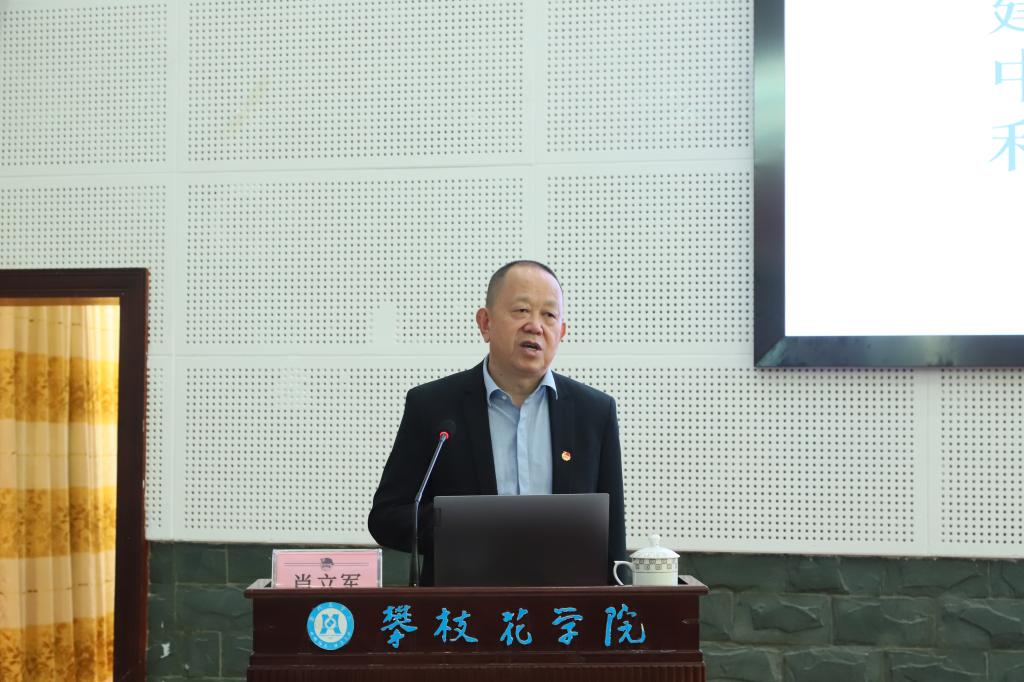 开班仪式结束后,肖立军作了题为“传承三线精神做中华民族伟大复兴的担当者”的首场主题报告会。报告从三线建设的历史回顾、三线建设中的攀枝花、三线精神对民族复兴的深刻启示等三个方面进行了详细阐述。他希望,“青马工程”班学员要用实际行动传承弘扬“艰苦创业、无私奉献、团结协作、勇于创新”的三线精神,树立坚定的理想信念,保持艰苦奋斗精神,做中华民族伟大复兴的担当者,为四川的美丽繁荣和谐幸福贡献青春智慧和力量。