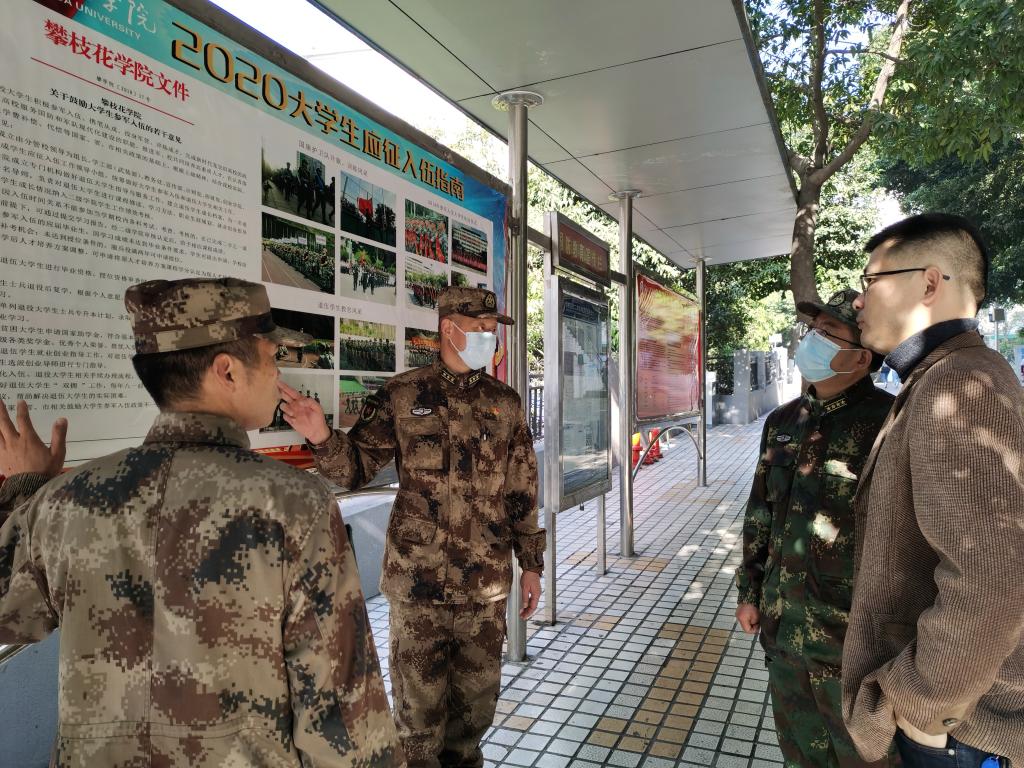 1月5日上午,攀枝花军分区黄育松副司令员一行到我校调研征兵工作及征兵工作站制度化建设。副校长、学校征兵工作领导小组副组长石维富陪同调研,学校武装部负责人以及武装科相关同志参加了调研。