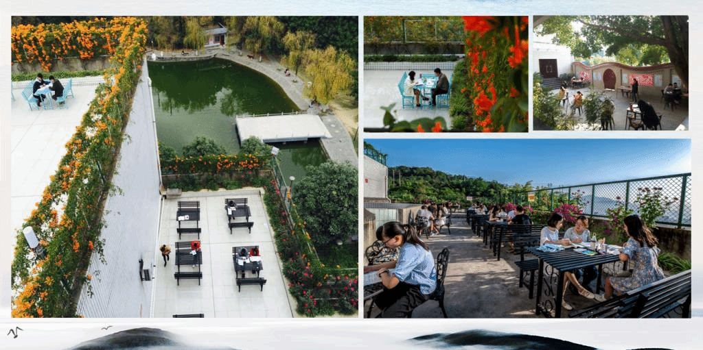 | 花开四季、生机盎然的图书馆室外阅读区 |