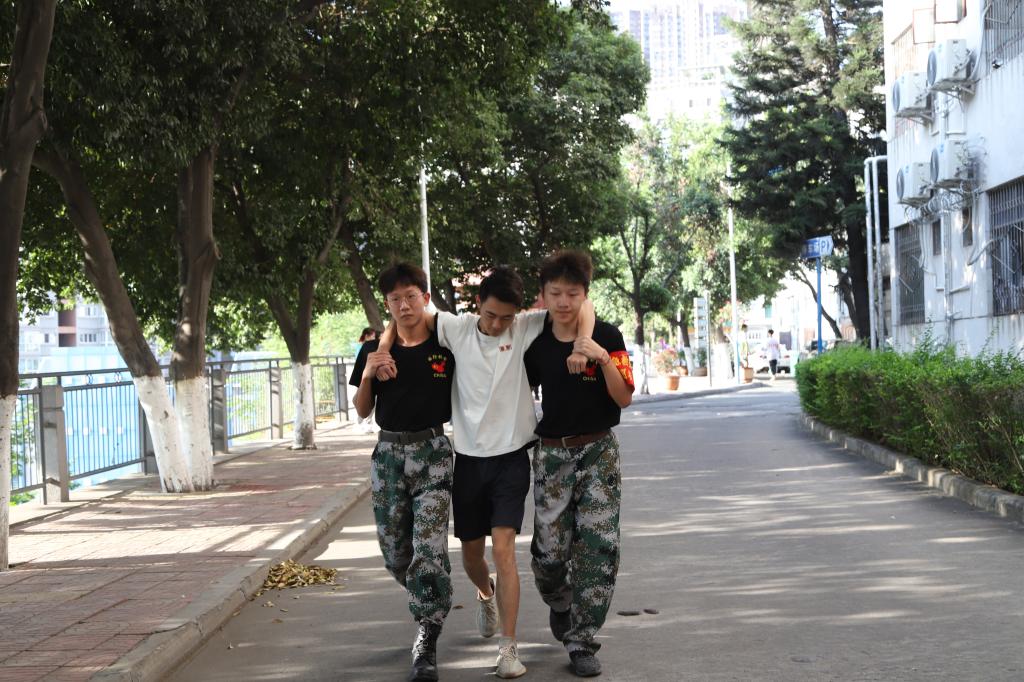 5分钟内,学校学生自救互救队集结完毕,按照预案开展校内自救互救和灾情调查并配合医护人员进行伤员救护。