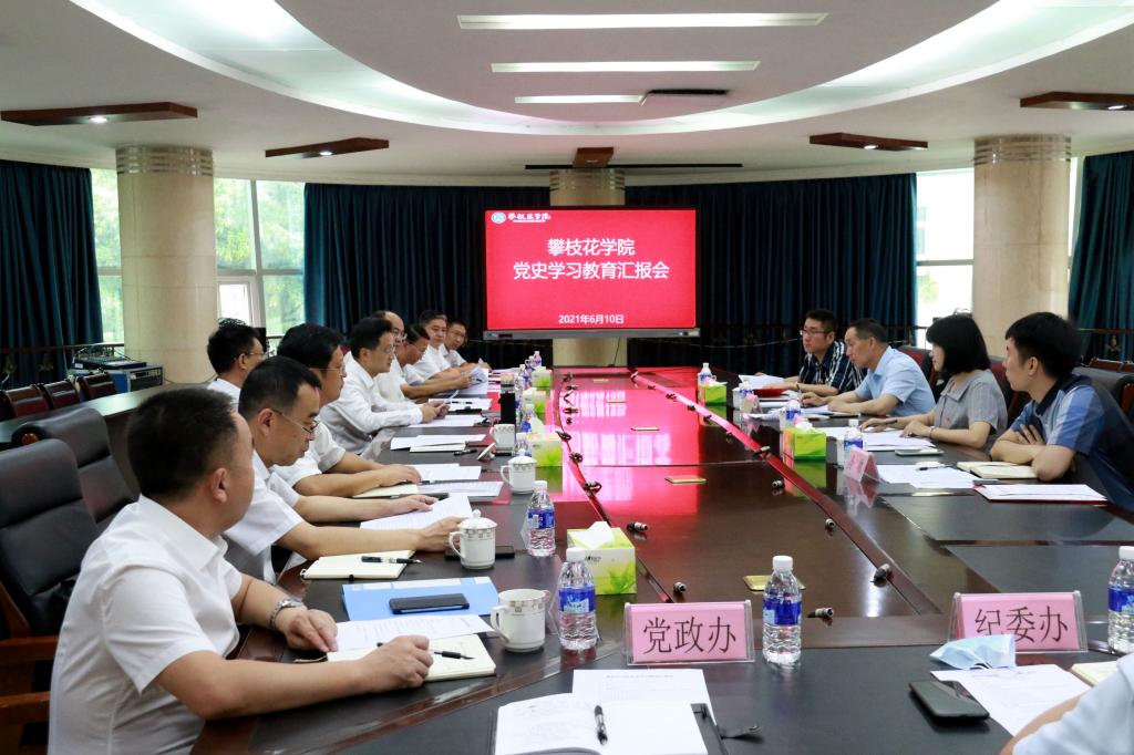 党史学习教育工作汇报会上,学校党史学习教育工作领导小组组长、党委书记王斌汇报了全校党史学习教育安排部署和推进工作情况。党史学习教育开展以来,学校党委严格按照中央和省委部署,将党史学习教育作为一项重大政治任务,以高度的政治自觉和思想自觉,紧紧围绕“学党史、悟思想、办实事、开新局”主题,紧紧围绕学史明理、学史增信、学史崇德、学史力行总体要求,立足学校实际,以“学党史、强自律”为主线,坚持把党史学习教育与落实立德树人根本任务结合起来、与推动学校事业高质量发展结合起来、与服务师生结合起来,突出顶层设计、突出特色亮点、突出深学细照、突出政治引领、突出问题导向,强化组织领导、抓实理论学习、创新形式载体、着眼力行担当,高站位、高质量、高标准、高水平、高实效推进党史学习教育,确保党史学习教育有力度、有深度、有广度、有温度,为奋力绘就新时代治蜀兴川新画卷贡献攀大力量。