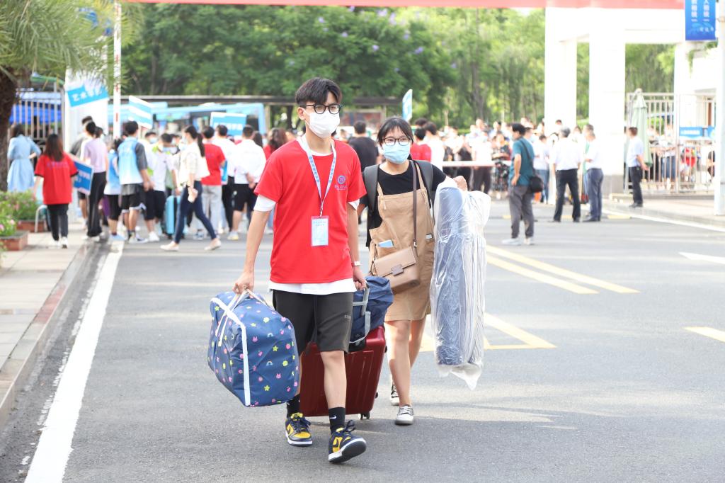 “在学院报到也就五分钟的时间,比我想象中的便捷多了,而且看到学校有四个食堂非常开心,更暖心的是,志愿者不仅帮我拿行李、解疑答惑,还处处关心,我对大学生活充满了期待。”外国语学院新攀豆儿高兴地说道。