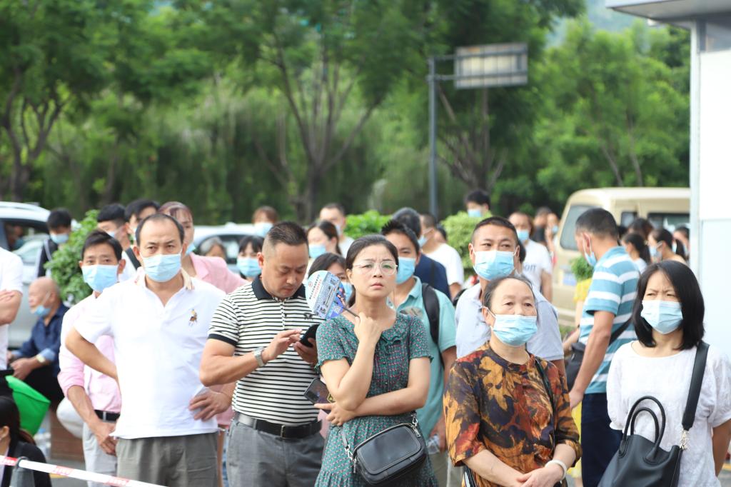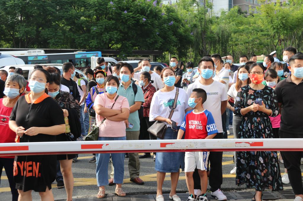 校门口的新生家长望着孩子远去的背影,怀揣着不舍之情与殷殷期盼,久久不忍离去。