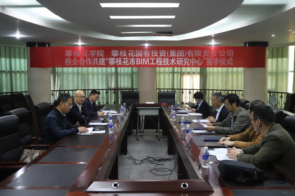 3月10日上午,攀枝花市国有投资(集团)有限责任公司董事长赵路一行到校出席“攀枝花市BIM工程技术研究中心”(以下简称“BIM研究中心”)共建签约仪式。校长王曙光出席签约仪式,科研处、土建学院、数计学院等部门参加仪式。签约仪式由副校长石维富主持。