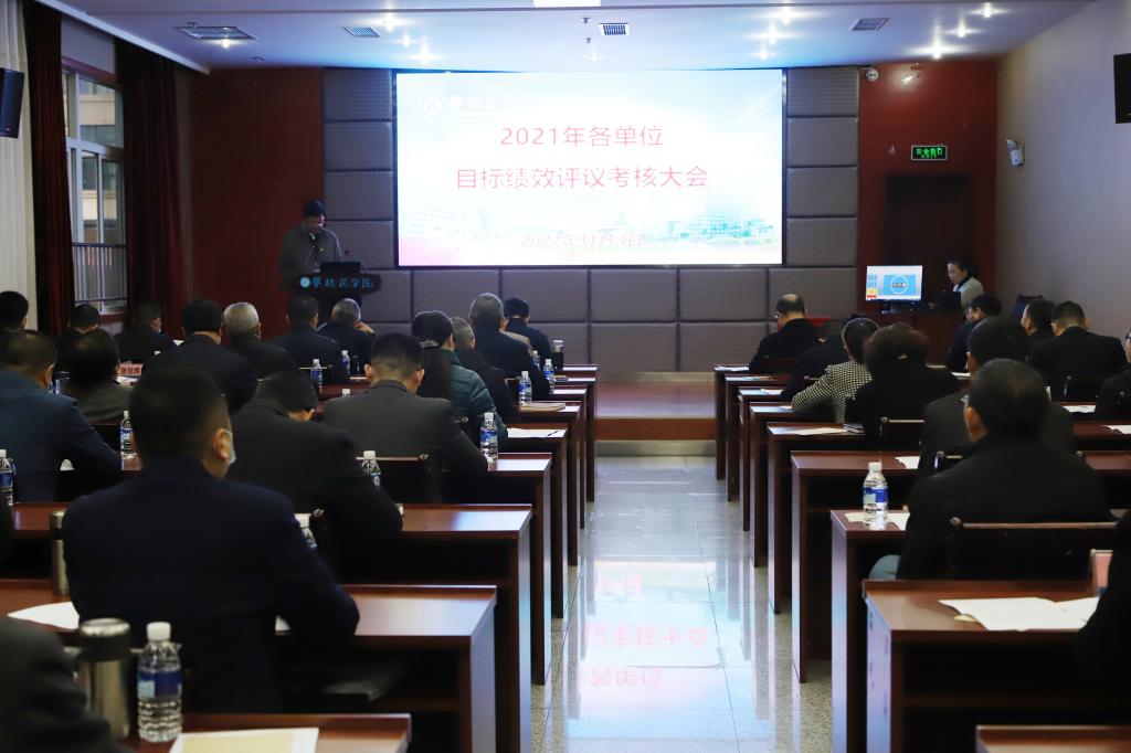 为突出结果导向,推进多元评价,发挥考核激励。1月14日上午,学校在办公楼四楼附楼会议室召开了“2021年各单位目标绩效评议考核会”,现场开展年度目标绩效评议考核。