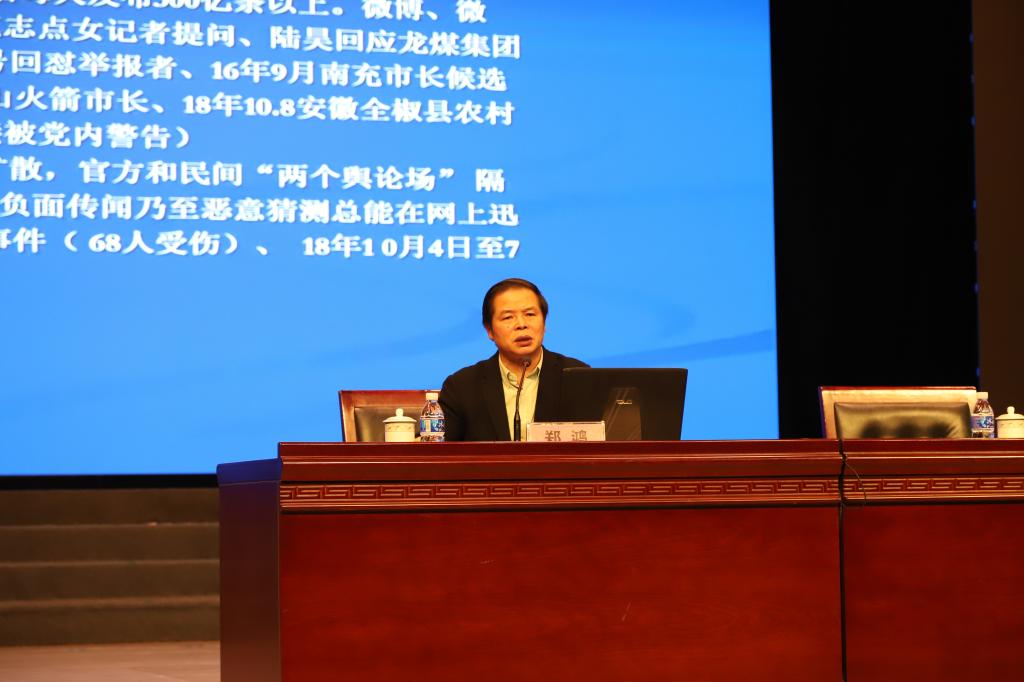 郑鸿结合多年工作经验,通过接触过的的大量案例,从网络安全与信息安全的重要性、正确认识当前我国面临的网络安全形势和任务、突发事件处置与网络舆情应对的实践与探索,就网络安全防范应对与网络舆情应对处置等进行了专题培训,他以丰富的知识、生动的语言和翔实的案例,讲解了如何认知、发现、研判网络舆情,如何建立健全网络舆情监管、处置、引导机制。培训内容翔实、事例生动、分析透彻、解读深刻,具有非常强的理论性、指导性和实践性。