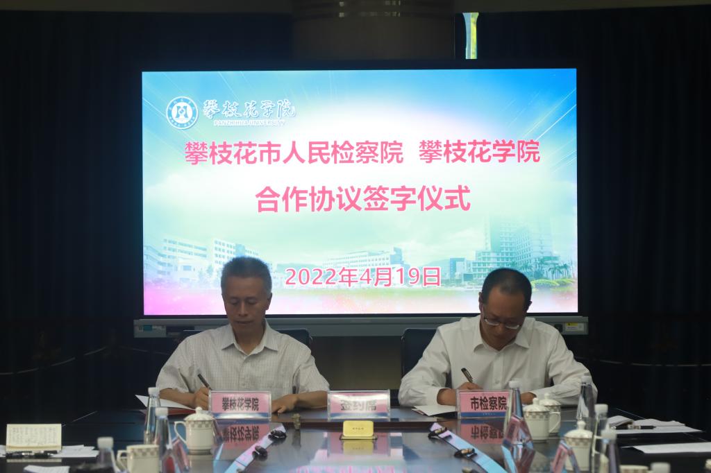 4月19日下午,我校与攀枝花市人民检察院合作签字仪式在办公楼三楼会议室举行。攀枝花市人民检察院党组书记、检察长刘勃,学校党委副书记、校长王曙光出席签字仪式。仪式由省纪委监委驻校纪监察组组长、校党委副书记、纪委书记彭徐主持,副校长刘立新、市人民检察院副检察长谢永崇、受聘授课检察官、法学院相关负责人及部分受聘特约理论研究员参加了仪式。