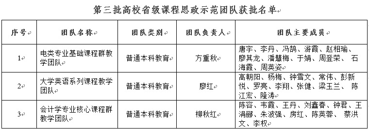 近日,四川省教育厅发布《关于公布第三批高等学校省级课程思政示范项目认定结果的通知》〔2022〕199号),我校获批第三批高校省级课程思政示范项目共计11个,其中示范专业1个、示范课程7个、示范教学团队3个。