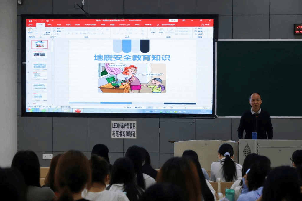 按照预定方案,9点30分,各场所教师按要求对学生开展地震应急知识教育。