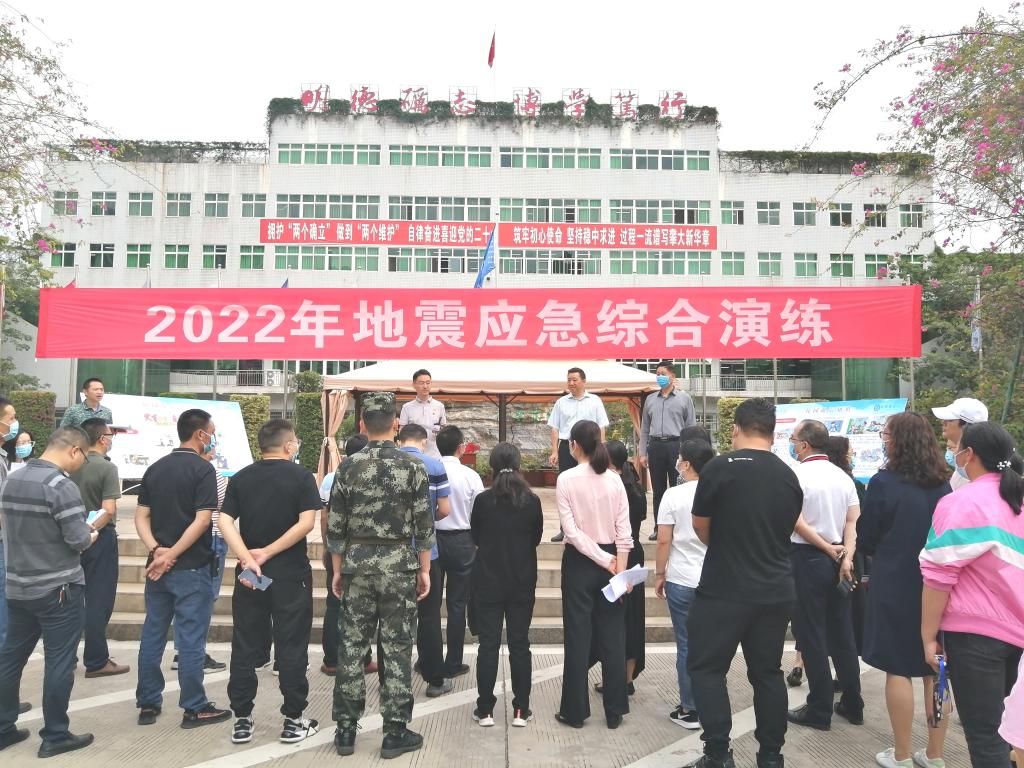为提升学生防震减灾意识和自救自护能力,使学生掌握正确的应急避震方法,5月20日上午,我校组织全体学生在南苑、西苑同时开展地震应急综合演练。党委副书记胥刚到场指导和督查。