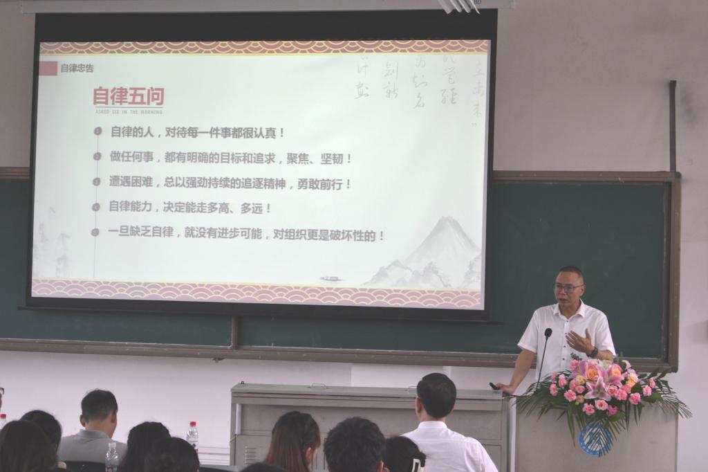 王斌对肖棱的讲座予以了高度评价,并寄语同学们要善于创造机会、勇于抓住机会,他强调“关键在过程,一流可达成,靠人更靠己,自律是根本”,同学们要深刻领会肖棱董事长讲座中提到的“自律五问”,时刻铭记“过程一流靠自律”,将自律当作一生的追求,立足工作岗位,全面展示自律攀大人的优良素质和精神风貌!