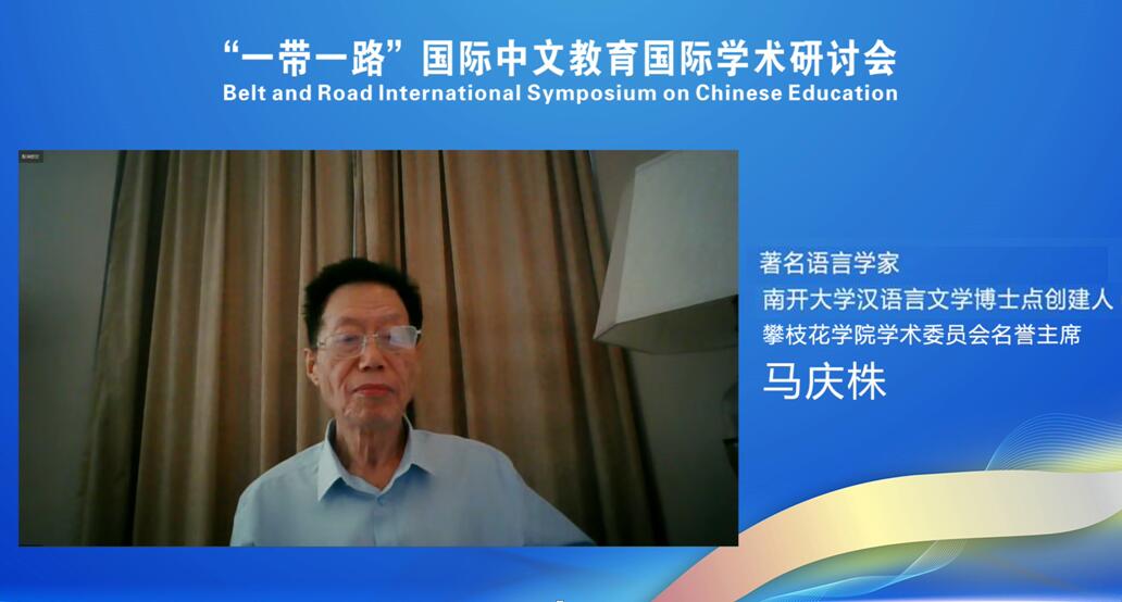 闭幕式上,马庆株先生对本次大会进行了总结,并就国际中文教育存在的问题及建议。他指出,在为期两天的学术研讨会上,来自5个国家的专家们相聚云端,分享学术成果,在观念碰撞、观点交流中展示了精深的学术思想和广博的学识,为大家呈现出一场异彩纷呈的学术盛宴。他强调,“一带一路”涉及到的范围大、国家多,汉语国际教育要关注所有国家,针对不同地区、不同情况实事求是采取不同方式开展。他指出,国际中文教育首先要增强民族自信,切实执行《中华人民共和国国家通用语言文字法》,要热爱中国语言、热心汉语事业,将国际中文教育作为终生事业去奋斗。