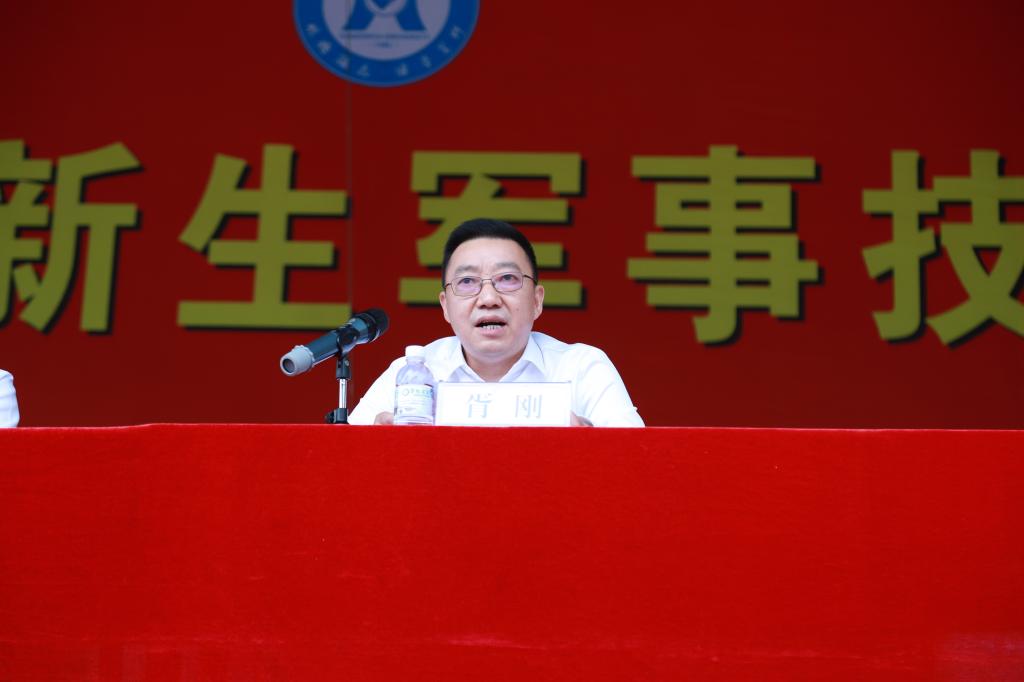 胥刚代表学校作动员讲话。他指出,军事技能训练是强化全民国防观念的重要手段,也是同学们尽快适应大学生活的有效途径。他要求,全体新生一定要通过军事技能训练强化自身身体素质,要倍加珍惜军训机会,遵守军训纪律,刻苦训练,做到特别能吃苦、特别能奉献、特别能战斗,实现生活上自理、管理上自治、学习上自觉、思想情操上自我修养。党的二十大召开在即,他希望全体参训人员都能在这次军训中受益、提高,用昂扬的斗志和崭新的精神面貌迎接党的二十大胜利召开,祝愿本次军训取得圆满成功。