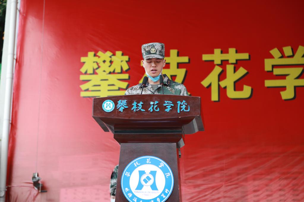 军训教官代表、基础医学院临床医学专业钱祖鑫代表学生教官发言。他表示将做好表率、尽职尽责,以高昂的热情、严格的要求全身心投入军训工作中,确保此次军训任务高标准、高质量完成。