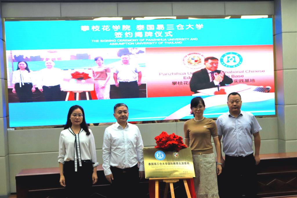 参加签约挂牌仪式的还有泰国易三仓大学注册部、国际合作办公室相关负责人,我校国际交流与合作处、文学院、科研处相关负责人和教师代表。