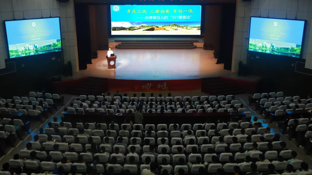 11月9日下午,党委书记王斌以“身在三线 二律相乘 争创一流——自律攀豆儿的‘321攀登法’”为题,为2022级全体新生作专题辅导,引领学生自律自强、成长成才。