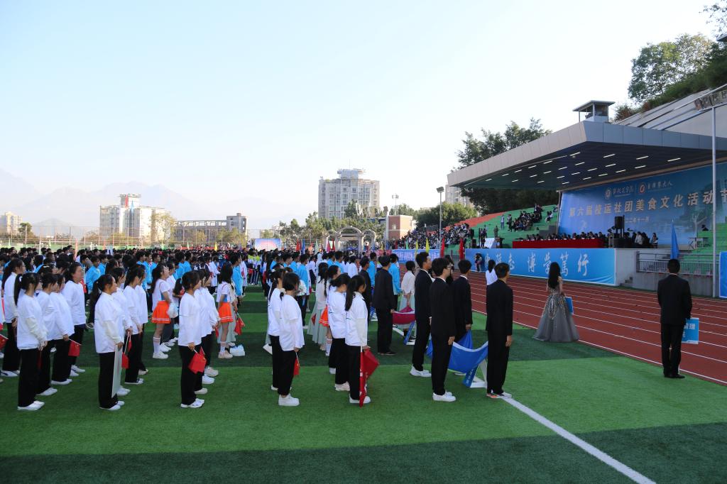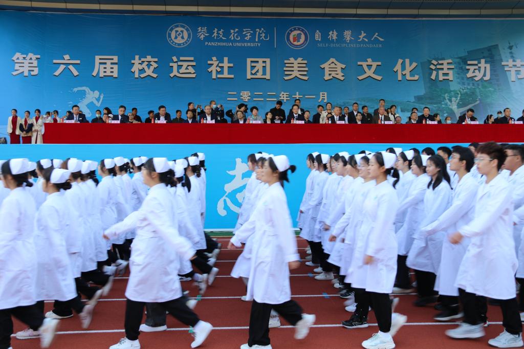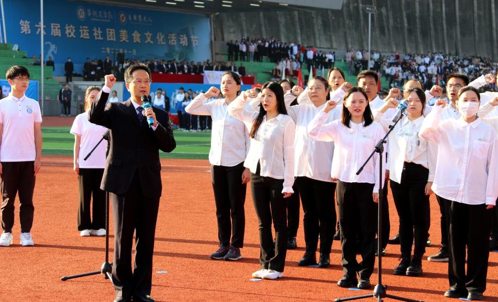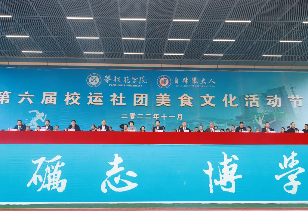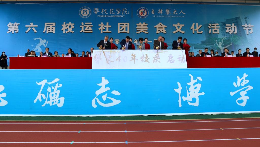 为庆祝党的二十大胜利召开,充分展示新时代新征程自律攀大人形象,凝聚人心团结奋斗,同时为学校2023年建校40周年营造良好氛围,11月11日上午,我校在田径运动场隆重举行第六届校运社团美食文化活动节开幕式暨校庆40周年启动仪式。党委书记王斌,党委副书记、校长王曙光,党委副书记、纪委书记彭徐,党委副书记胥刚,副校长刘立新、朱波强、王兵、张旭辉出席仪式,中共攀枝花市委常委、统战部部长马晓凤,学校原党委副书记、学校关工委主任张彦博,台州校友会首任会长郭云峰作为特别嘉宾应邀出席。各教学单位党政负责人、附属医院相关负责人及机关教辅单位负责人,教师代表,校友代表、学生代表等5000余人参加开幕式。开幕式由王兵主持。