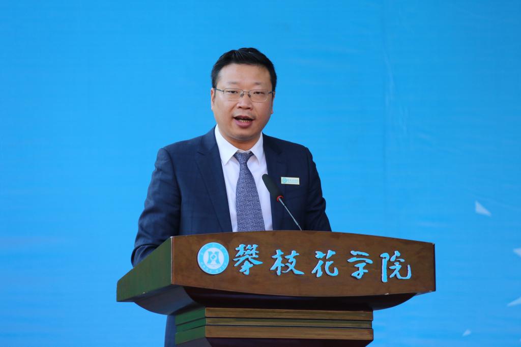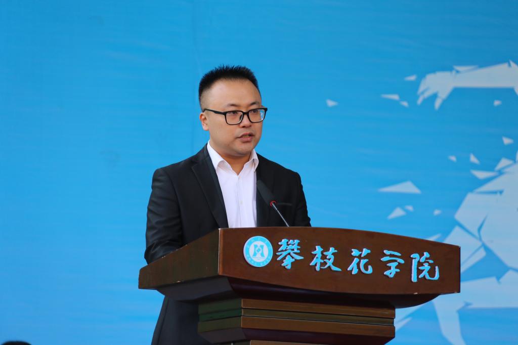 钒钛学院张士举老师代表创新创业类先进个人发言。他呼吁全校老师和同学们加入双创大军,以青年创新之力,为实体经济赋能。他表示,创新创业导师们会以“关心学生、筑梦未来”为责任和使命来开展创新创业项目培育和指导工作,以一流的过程追求一流的成果。