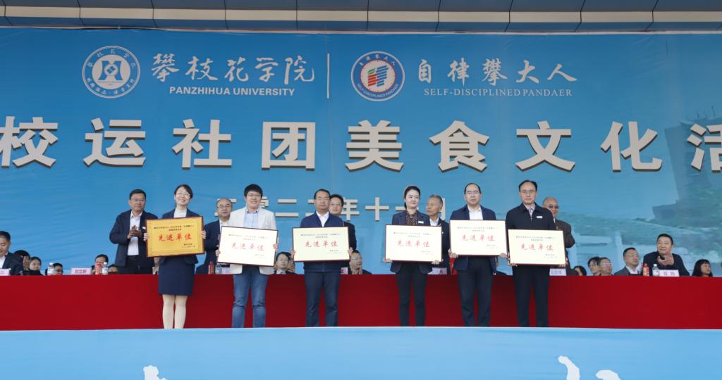开幕式上,现场表彰了在创新创业和体育竞技类比赛中获奖的单位及个人,在四川省第八届国际“互联网+”竞赛、四川省“挑战杯”竞赛、获得省级及以上奖励的教练员、运动员代表以及2021-2022学年“自律攀大人”校园体育活动先进单位——经管学院、数计学院、土建学院、 钒钛学院、生化学院、智能制造学院,校领导和现场嘉宾为获奖团队和个人颁奖。