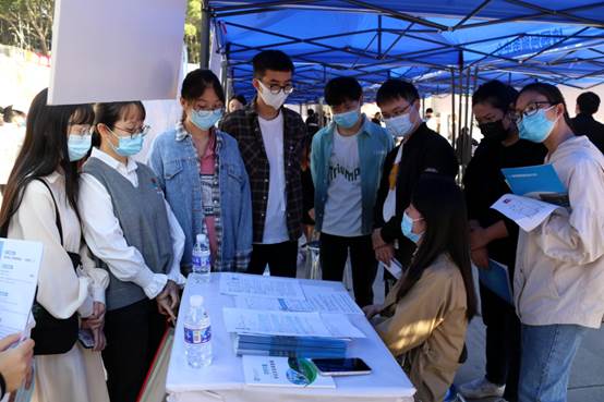 会场上,阳光和煦,人头攒动。毕业学子们着装整洁,积极地咨询就业相关情况。招聘会还吸引很多非毕业生前来咨询。