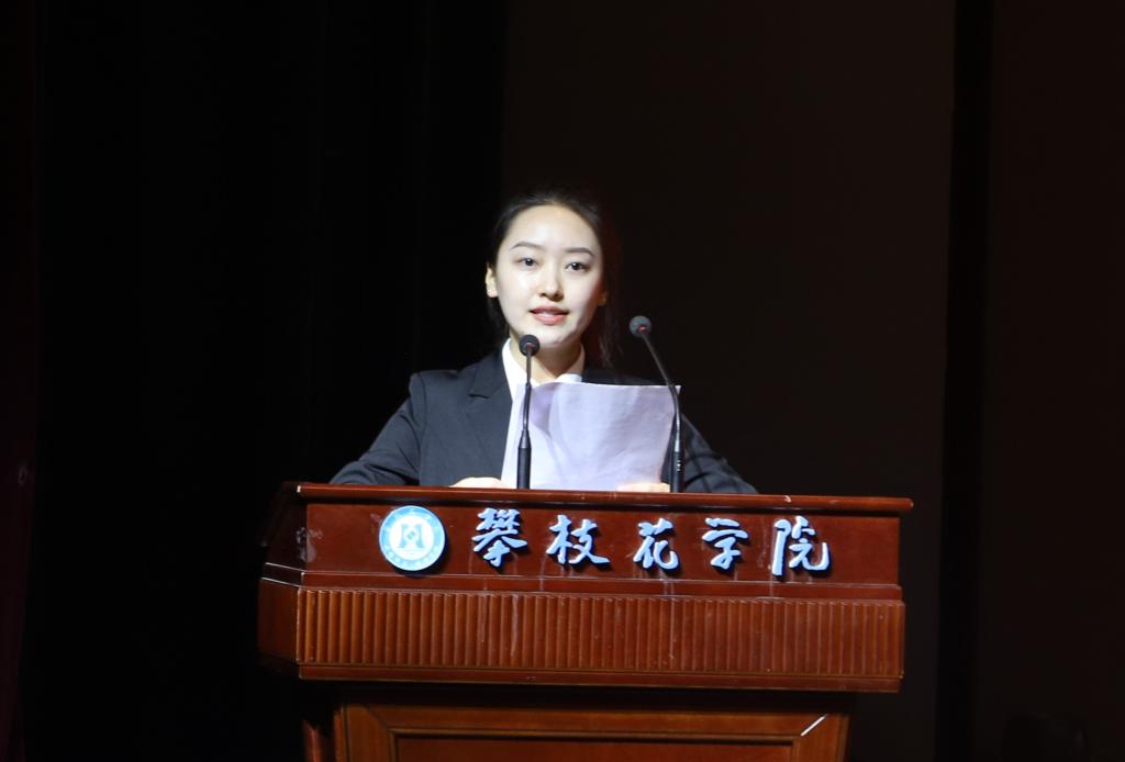 第六届学生委员会委员阎雯作题为“在全面建设社会主义现代化国家的火热实践中绽放绚丽之花”的工作报告。