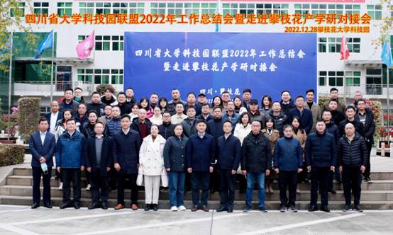12月28日,由四川省大学科技园联盟主办、攀枝花大学科技园承办的四川省大学科技园联盟工作总结会暨走进攀枝花产学研对接会在我校举行。四川省生产力促进中心管理服务部副部长蒋德书、攀枝花市科技局副局长池勇、攀枝花市盐边县副县长李晓波、攀枝花市盐边县经科局局长邓勇,四川省大学科技园联盟理事长颜锦江、四川省大学科技园联盟秘书长陈丽莉等四川省、攀枝花市级部门相关负责人和联盟各成员单位参加了会议,党委书记王斌、副校长王兵出席会议并讲话。会议由陈丽莉主持。