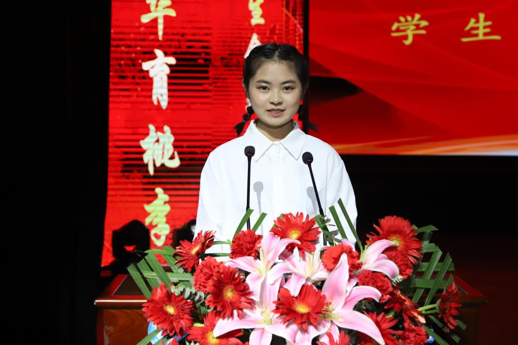 2021级中专二班刘馨媛同学代表1304名卫校学生表达了莘莘学子对卫校的祝福、对老师的感恩,以及勤学苦练、自律奋进的决心。