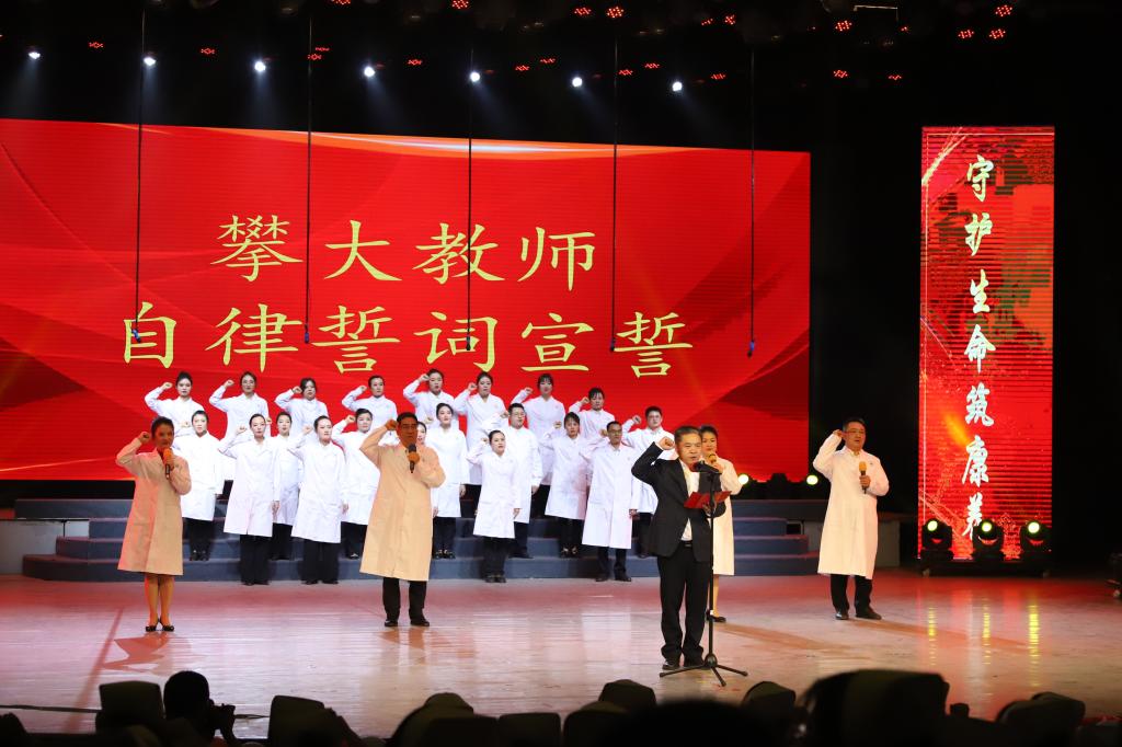 大会现场,教师代表在王兵领誓下,举行了“攀大教师自律誓词”宣誓。