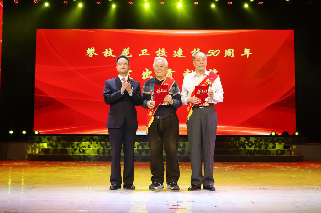 大会进行了“50年50人”表彰颁奖活动。授予龚明生、金作衡等2名同志“突出贡献奖”,计家珠、叶式化等16名同志“奉献奖”,方华、王娟等12名同志“优秀校友”,王吉祥、左磊等10名同学“自律之星”,王文希、候军飞等10名同学“康养达人”荣誉称号。王斌、胥刚、王兵等校领导上台为他们颁奖,并合影留念。