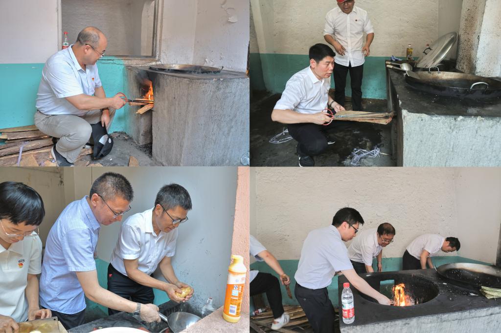 共做创业饭。时近中午,大家在“自己动手,丰衣足食”标语感召下,热情高涨钻进土灶房,搭起干木柴,端起锅碗瓢盆,清洗土豆番茄,生火、切菜、做饭,面对自己做的“创业饭”,虽然简单朴实,大家吃得格外香甜,在做土灶创业饭的体验中接受三线精神的洗礼,深切体会三线建设者的奉献情怀。