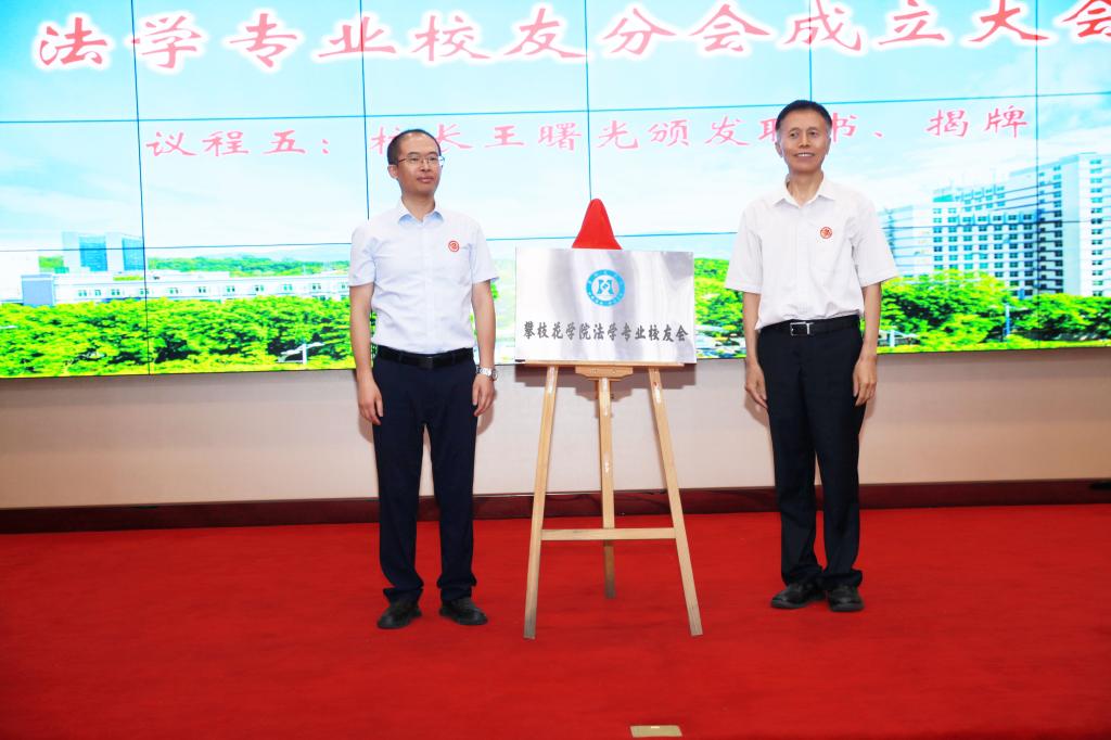 王曙光和法学专业校友分会会长李明华共同为法学专业校友分会揭牌。