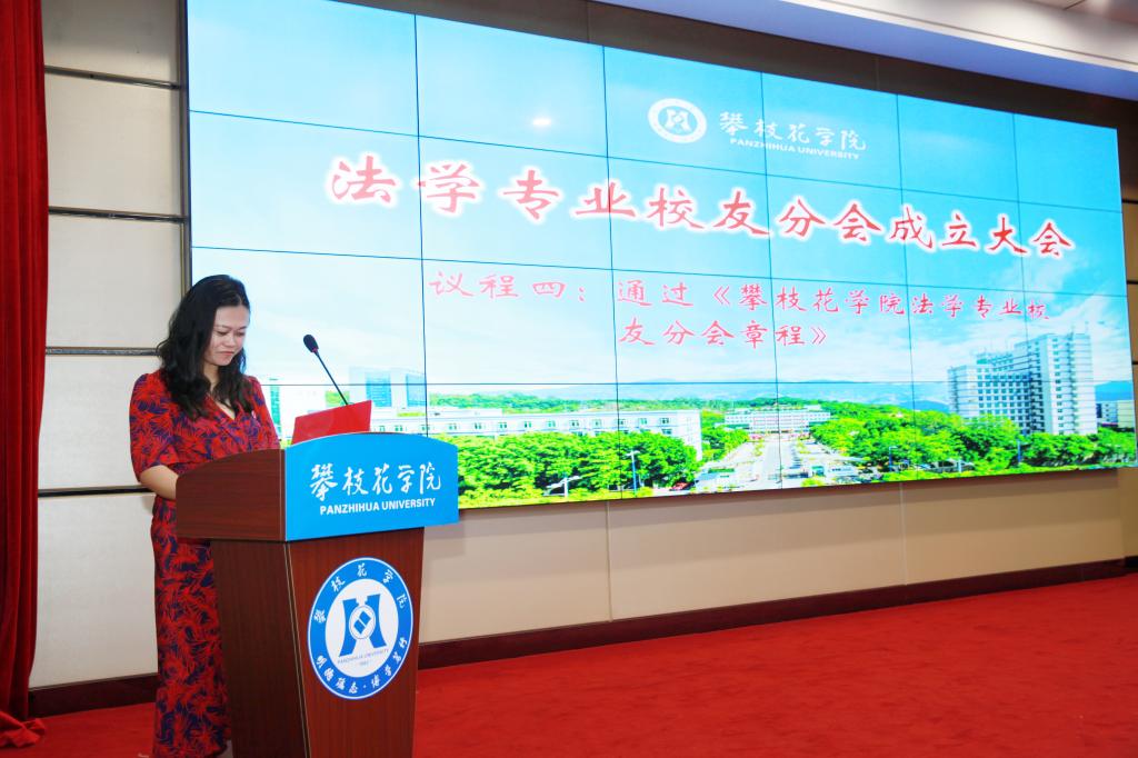 法学专业校友分会执行会长王芬现场宣读并表决通过了《下载香港宝典2021法学专业校友分会章程》。
