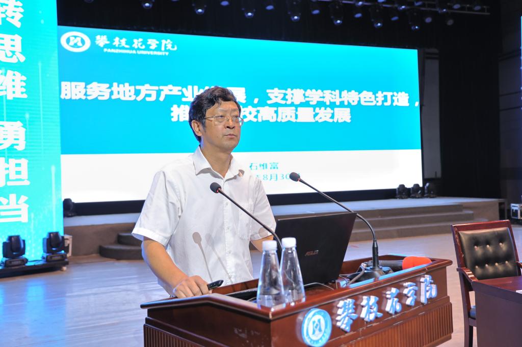 8月30日上午,我校在会堂召开全校教职工大会,会议以“深入学习贯彻习近平新时代中国特色社会主义思想,自律自强、大德大爱奋力谱写阳光健康美丽攀大新篇章”为主题,全面总结分析了学校当前学科建设、教学科研、人才队伍、招生就业、服务地方等工作情况,对新学期重点工作进行了部署安排。在校校领导、全校教职工共1000余人参加大会。党委书记胥刚主持会议并总结讲话。
