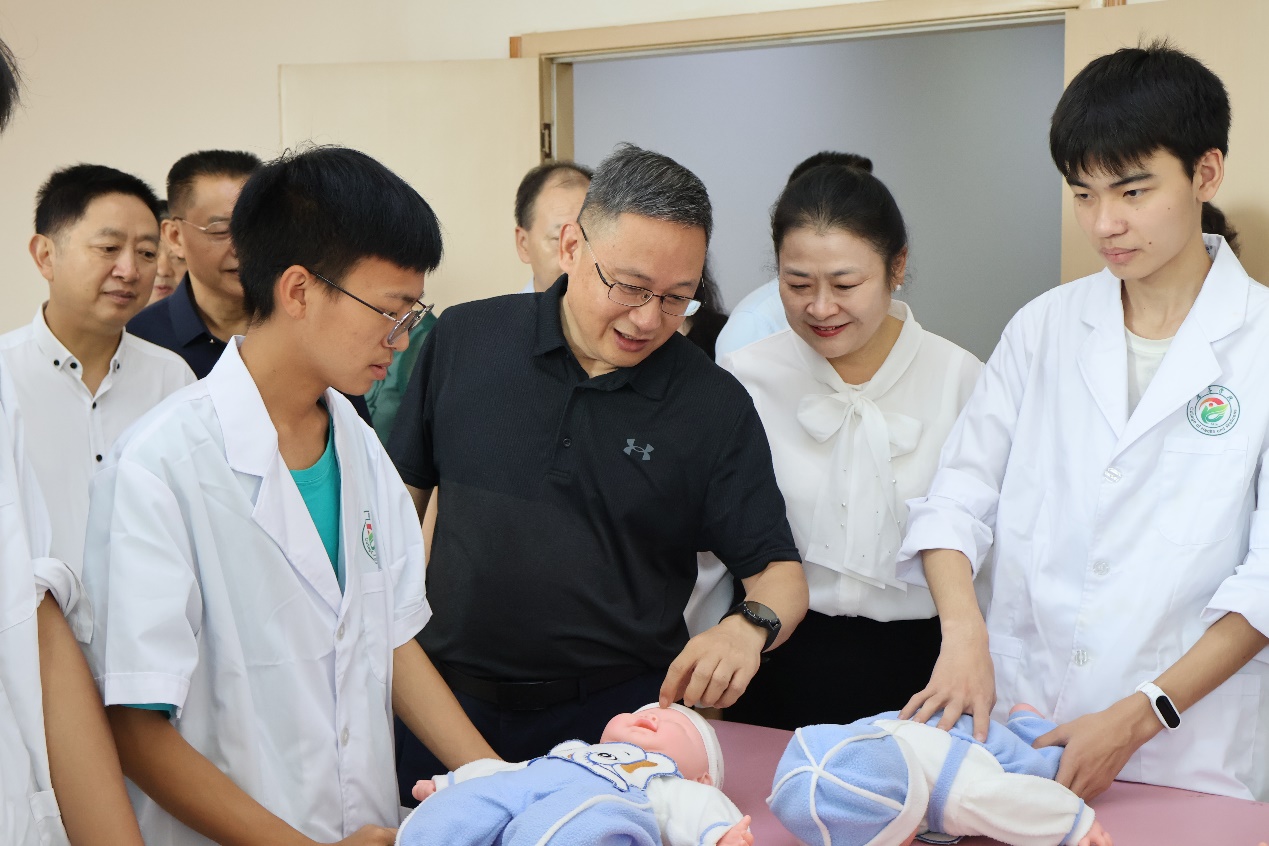 刘旭光一行实地察看了攀枝花康养职业技能实训基地的母婴护理实训室、护理实训室、老年关爱室等基地建设,观看了康养学院宣传视频,听取了康养学院负责人关于学院发展历程、专业特色、国际交流、人才培养、产教融合、医养结合、特色窗口等方面的工作汇报。