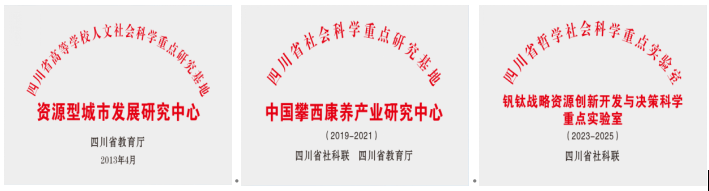 学院聚焦和服务国家攀西战略资源创新开发和区域发展战略,着力加强社会服务能力建设和质量提升,充分发挥学院学科科研和人才综合优势,加强与地市、区县开展校地全方位战略合作,围绕地方特色产业开展系列研究。目前,学院独立建设有四川省社科联社会科学重点研究基地“中国攀西康养产业研究中心”、四川省社科联重点实验室(培育)“钒钛战略资源创新开发与决策科学重点实验室”、四川省教育厅人文社会科学重点研究基地“资源型城市发展研究中心”等3个省级科研平台。近年来,共承担国家、省级科研项目53项,横向项目65项,总经费1400多万元,省部级获奖16项,市厅级获奖50余项,出版专著18部,发表论文1000余篇,撰写研究报告和产业规划100余部,研究人员撰写的多份调研报告和决策咨询报告获得国家、省、市领导人的肯定性批示,有效提升了攀西战略资源综合利用水平和企业市场竞争力。