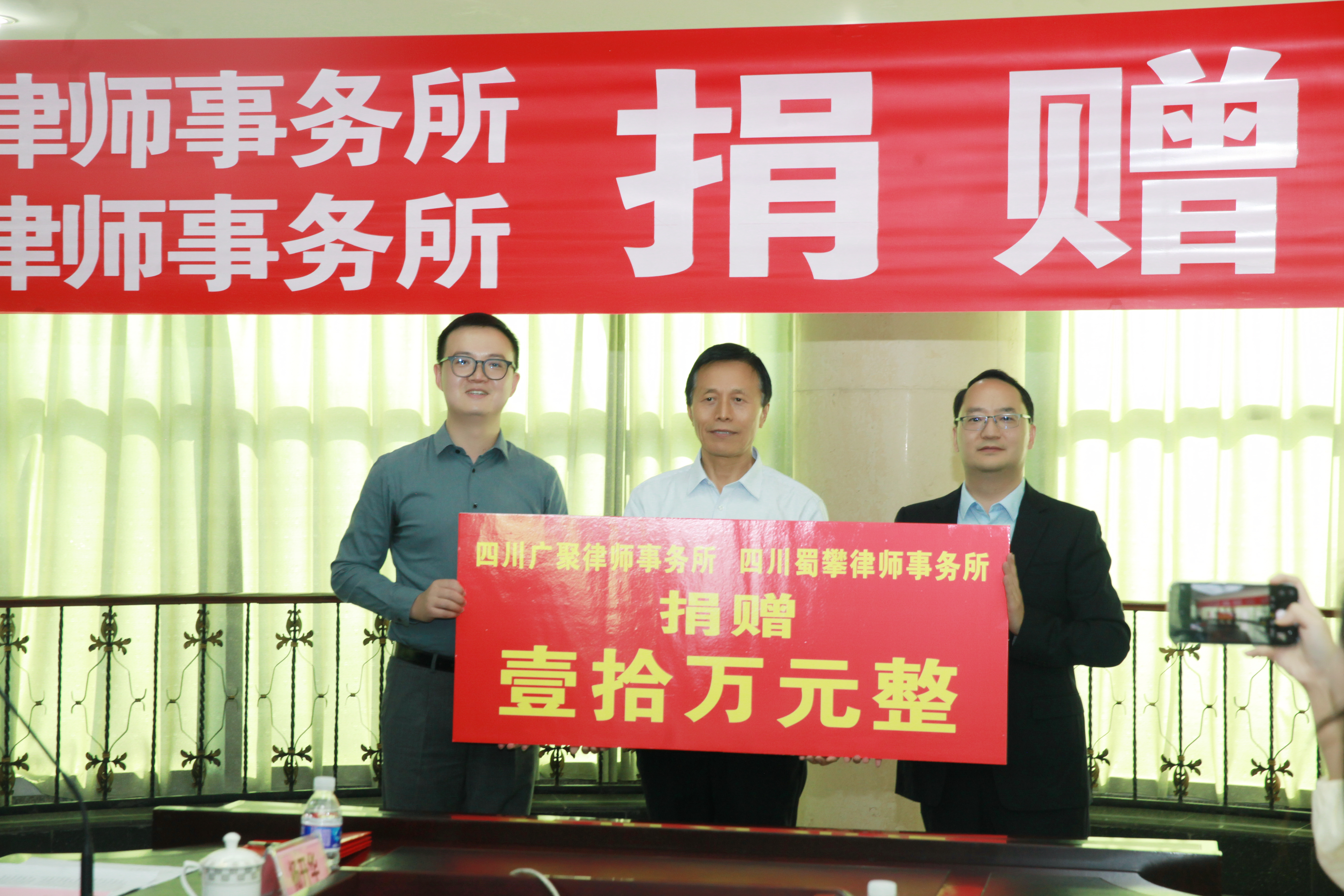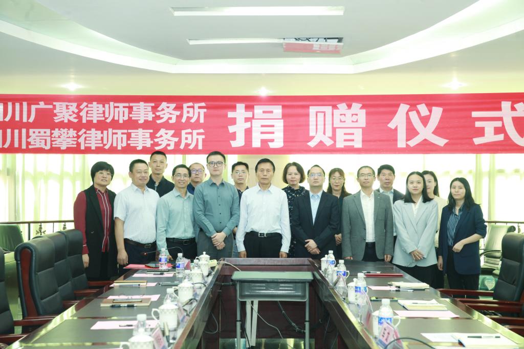 为回馈母校、助力发展,我校法学院校友创办企业四川广聚律师事务所、四川蜀攀律师事务所向学校捐赠10万元,用于法学专业人才培养和学科建设。10月31日下午,学校在行政楼四楼会议室举行捐赠仪式。党委副书记、校长王曙光,四川广聚律师事务所主任车龙、高级合伙人李明华,四川蜀攀律师事务所主任蒲文峰出席捐赠仪式。学校相关部门负责人、法学院班子成员参加仪式。