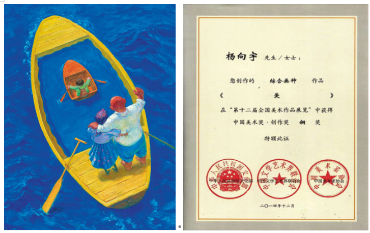 | 杨向宇漫画作品《爱》及第十二届全国美展铜奖证书 |